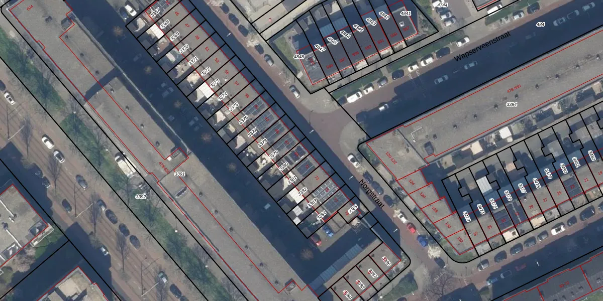 Gebruik de zoekbalk of klik op een perceel voor informatie over de adressen binnen dit perceel.