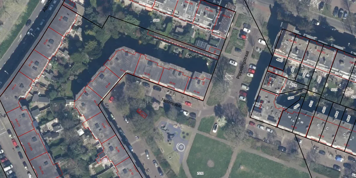 Het perceel waarop Notenplein 47 staat heeft een oppervlakte van 1,5 ha. Dit is een zeer groot perceel. De perceeloppervlakte wordt geregistreerd door het Kadaster. Gedetailleerde informatie over de maten van dit perceel kunt u vinden in het rapport Kadastrale kaart met maatvoering van Notenplein 47.