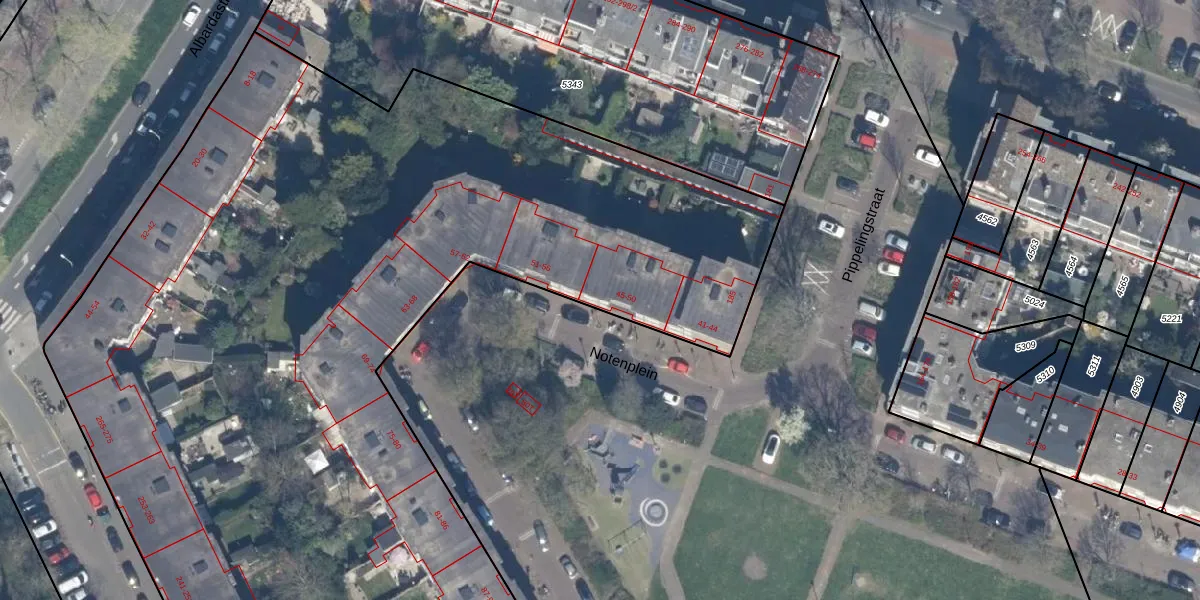 Het perceel waarop Notenplein 49 staat heeft een oppervlakte van 1,5 ha. Dit is een zeer groot perceel. De perceeloppervlakte wordt geregistreerd door het Kadaster. Gedetailleerde informatie over de maten van dit perceel kunt u vinden in het rapport Kadastrale kaart met maatvoering van Notenplein 49.