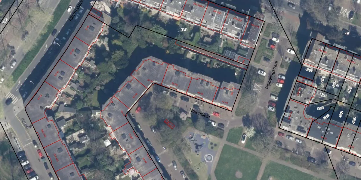Het perceel waarop Notenplein 52 staat heeft een oppervlakte van 1,5 ha. Dit is een zeer groot perceel. De perceeloppervlakte wordt geregistreerd door het Kadaster. Gedetailleerde informatie over de maten van dit perceel kunt u vinden in het rapport Kadastrale kaart met maatvoering van Notenplein 52.
