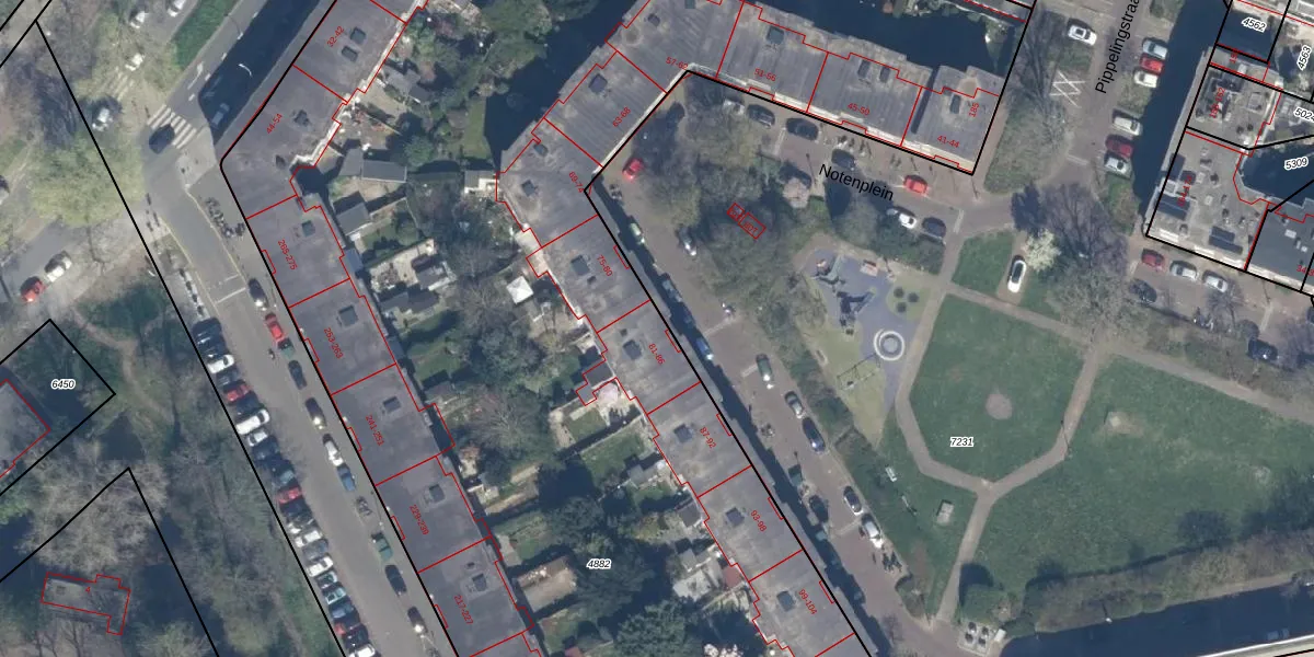 Het perceel waarop Notenplein 81 staat heeft een oppervlakte van 1,5 ha. Dit is een zeer groot perceel. De perceeloppervlakte wordt geregistreerd door het Kadaster. Gedetailleerde informatie over de maten van dit perceel kunt u vinden in het rapport Kadastrale kaart met maatvoering van Notenplein 81.