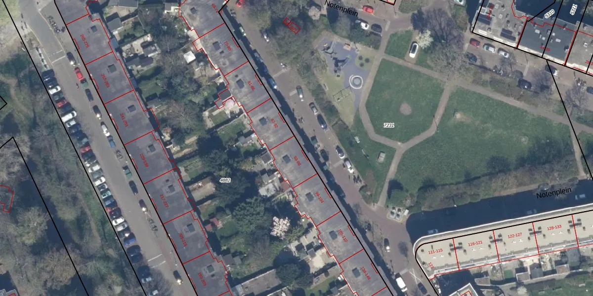 Notenplein 93 is gelegen op kadastraal perceel LDN03I4882. Deze kadastrale aanduiding is uniek en wordt gebruikt door het Kadaster om eigendomsrechten en andere zakelijke rechten vast te leggen. Het perceel maakt onderdeel uit van de kadastrale gemeente Loosduinen.