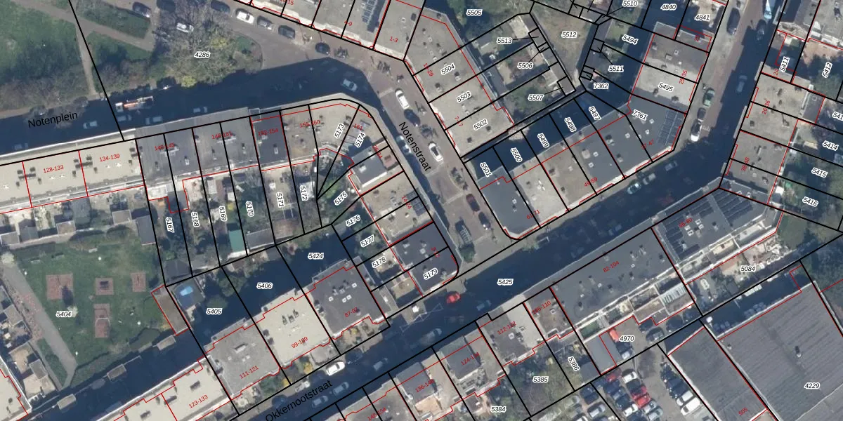 Notenstraat 18 is gelegen op kadastraal perceel LDN03I5177. Deze kadastrale aanduiding is uniek en wordt gebruikt door het Kadaster om eigendomsrechten en andere zakelijke rechten vast te leggen. Het perceel maakt onderdeel uit van de kadastrale gemeente Loosduinen.