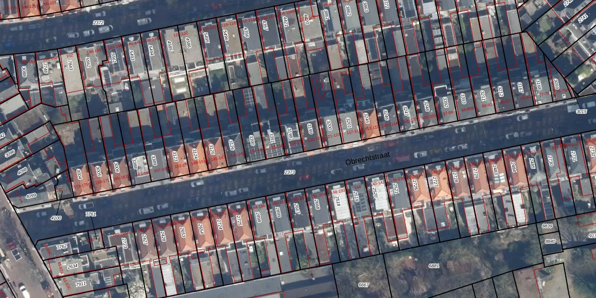 Het perceel waarop Obrechtstraat 129-A staat heeft een oppervlakte van 165 m². Dit is een middelgroot perceel. De perceeloppervlakte wordt geregistreerd door het Kadaster. Gedetailleerde informatie over de maten van dit perceel kunt u vinden in het rapport Kadastrale kaart met maatvoering van Obrechtstraat 129-A.