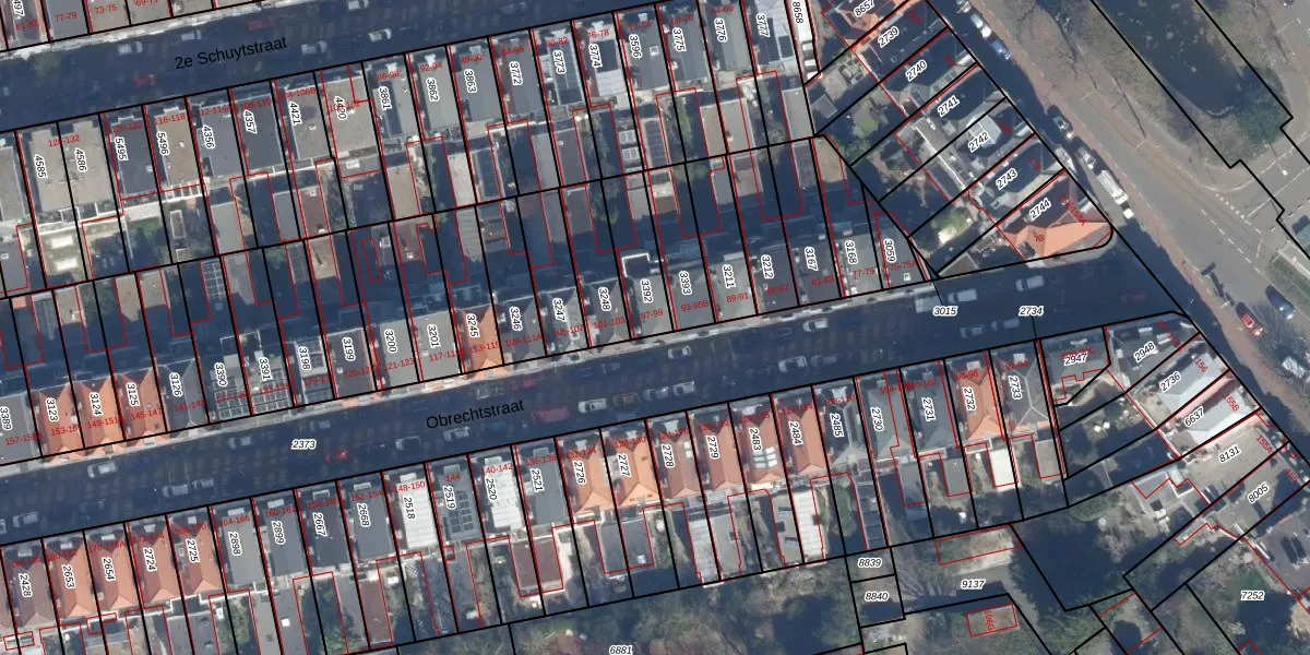 Het perceel waarop Obrechtstraat 97 staat heeft een oppervlakte van 162 m². Dit is een middelgroot perceel. De perceeloppervlakte wordt geregistreerd door het Kadaster. Gedetailleerde informatie over de maten van dit perceel kunt u vinden in het rapport Kadastrale kaart met maatvoering van Obrechtstraat 97.