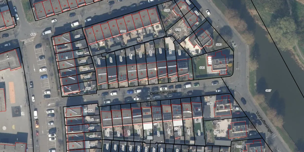Oeverbiesstraat 14 is gelegen op kadastraal perceel GVH39AY4449. Deze kadastrale aanduiding is uniek en wordt gebruikt door het Kadaster om eigendomsrechten en andere zakelijke rechten vast te leggen. Het perceel maakt onderdeel uit van de kadastrale gemeente 's-Gravenhage.
