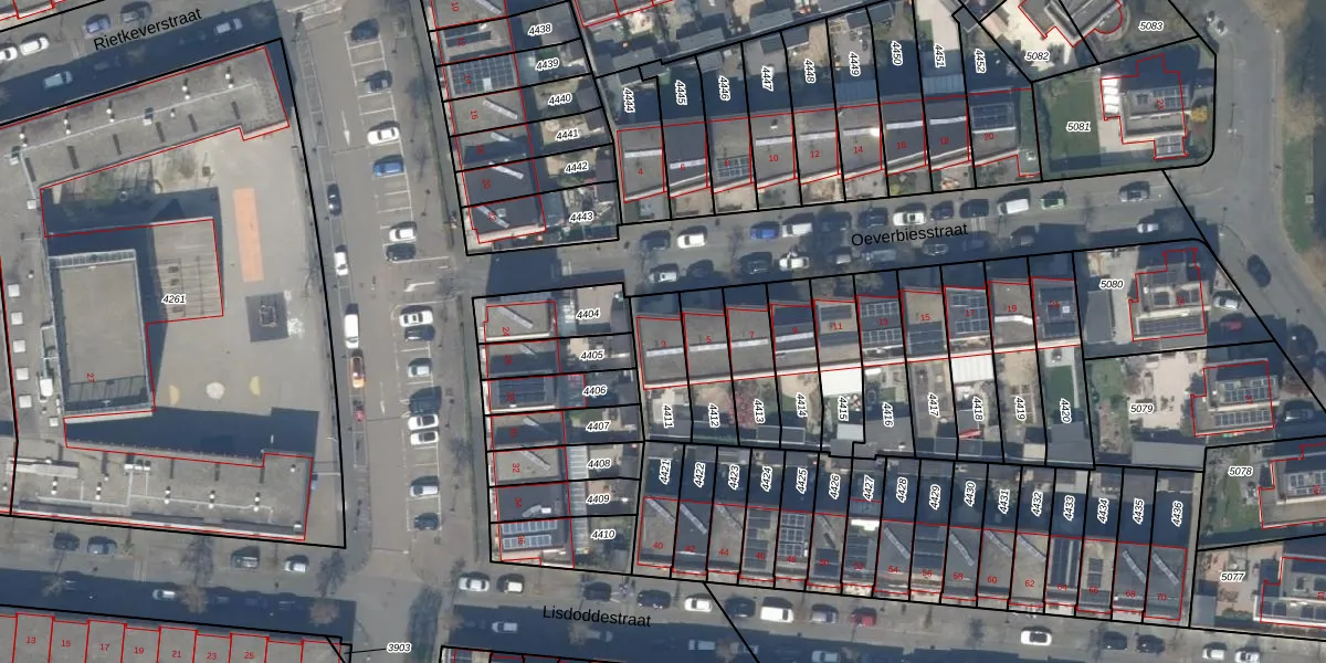 Gebruik de zoekbalk of klik op een perceel voor informatie over de adressen binnen dit perceel.