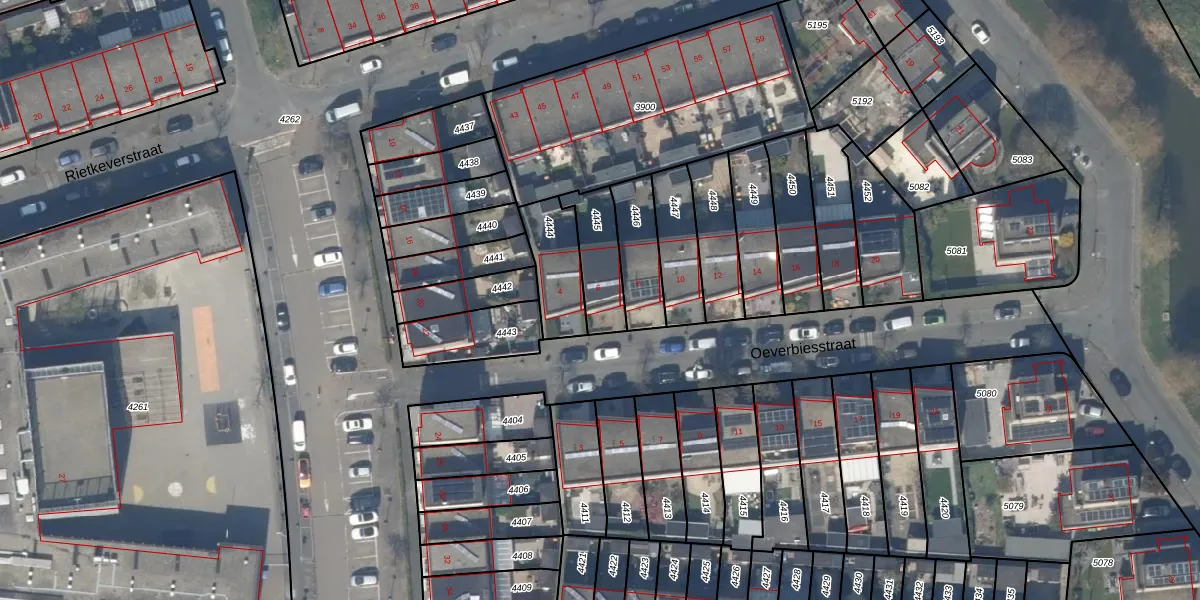 Gebruik de zoekbalk of klik op een perceel voor informatie over de adressen binnen dit perceel.