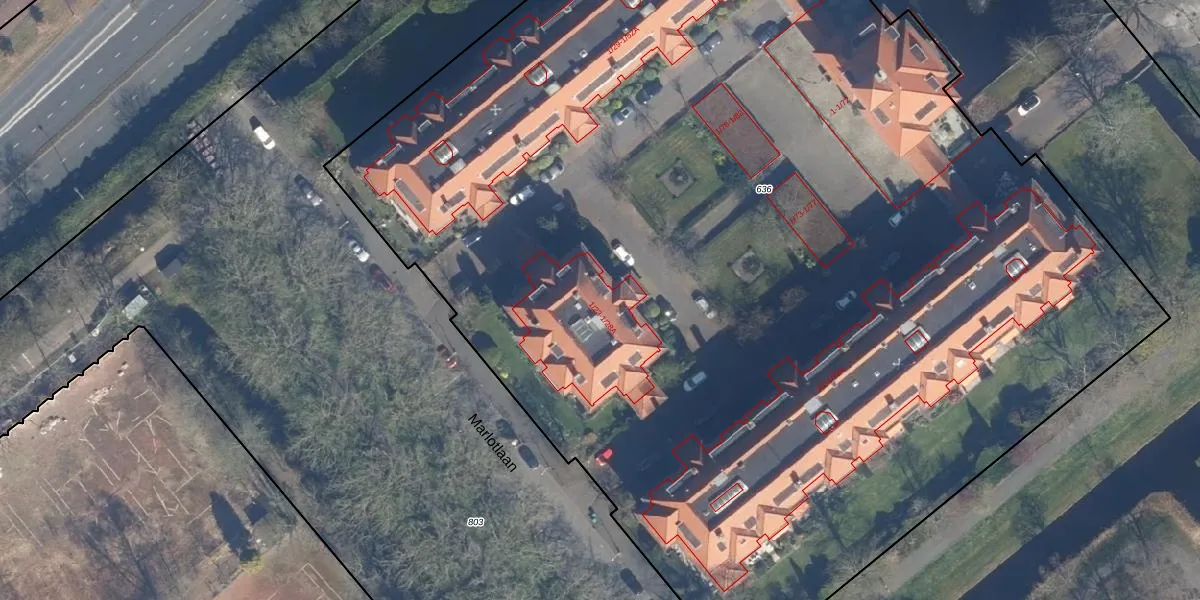 Het perceel waarop Offenberglaan 1-28A staat heeft een oppervlakte van 9928 m². Dit is een zeer groot perceel. De perceeloppervlakte wordt geregistreerd door het Kadaster. Gedetailleerde informatie over de maten van dit perceel kunt u vinden in het rapport Kadastrale kaart met maatvoering van Offenberglaan 1-28A.