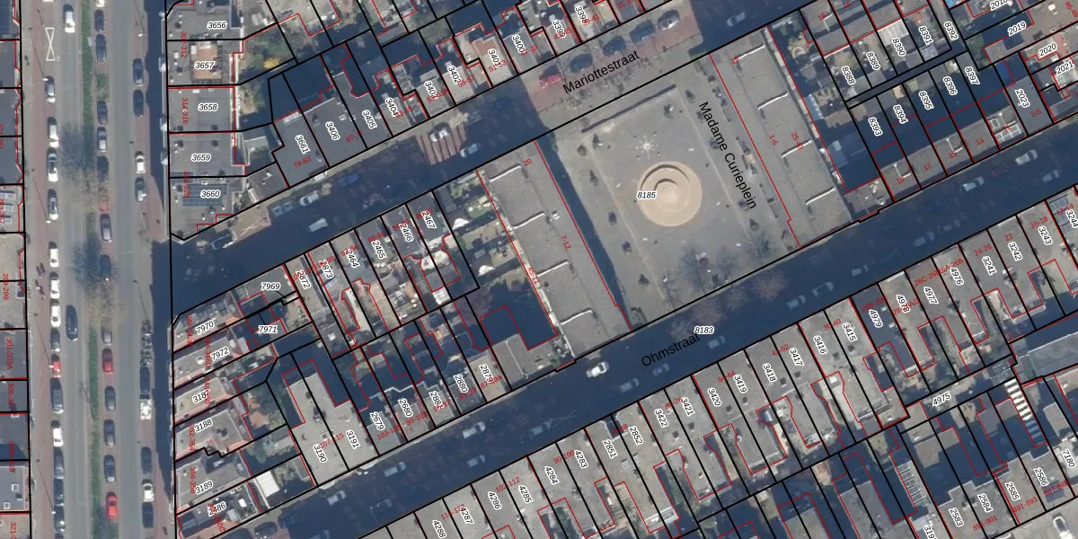 Het perceel waarop Ohmstraat 57 staat heeft een oppervlakte van 3111 m². Dit is een zeer groot perceel. De perceeloppervlakte wordt geregistreerd door het Kadaster. Gedetailleerde informatie over de maten van dit perceel kunt u vinden in het rapport Kadastrale kaart met maatvoering van Ohmstraat 57.