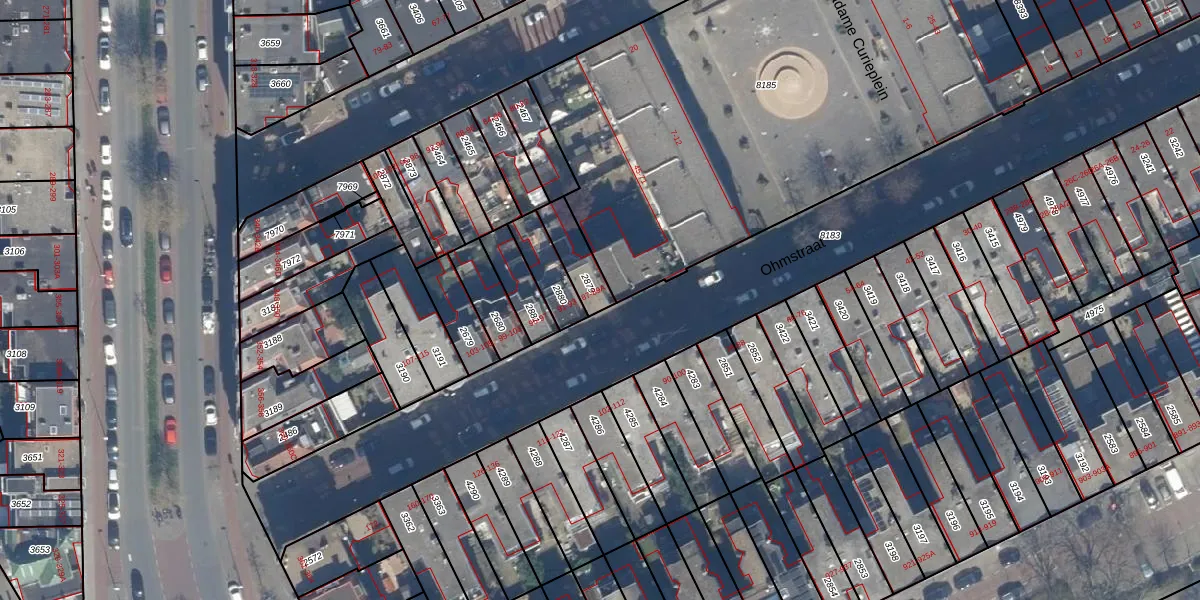 Het perceel waarop Ohmstraat 89 staat heeft een oppervlakte van 104 m². Dit is een middelgroot perceel. De perceeloppervlakte wordt geregistreerd door het Kadaster. Gedetailleerde informatie over de maten van dit perceel kunt u vinden in het rapport Kadastrale kaart met maatvoering van Ohmstraat 89.