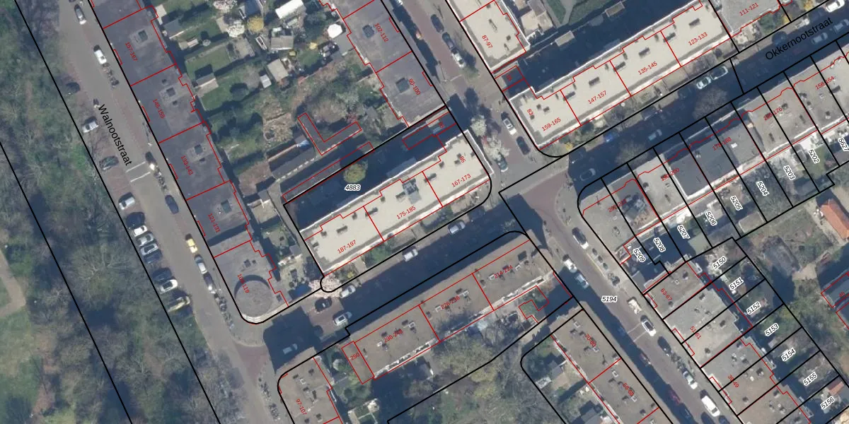 Okkernootstraat 175 is gelegen op kadastraal perceel LDN03I4883. Deze kadastrale aanduiding is uniek en wordt gebruikt door het Kadaster om eigendomsrechten en andere zakelijke rechten vast te leggen. Het perceel maakt onderdeel uit van de kadastrale gemeente Loosduinen.