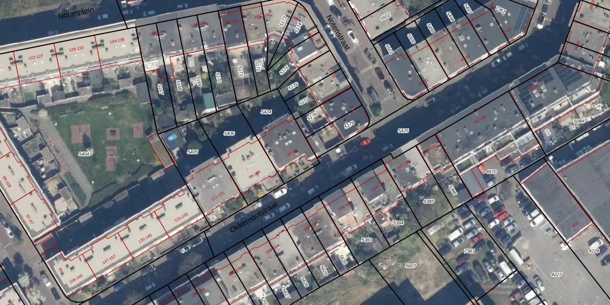 Het perceel waarop Okkernootstraat 87 staat heeft een oppervlakte van 403 m². Dit is een groot perceel. De perceeloppervlakte wordt geregistreerd door het Kadaster. Gedetailleerde informatie over de maten van dit perceel kunt u vinden in het rapport Kadastrale kaart met maatvoering van Okkernootstraat 87.