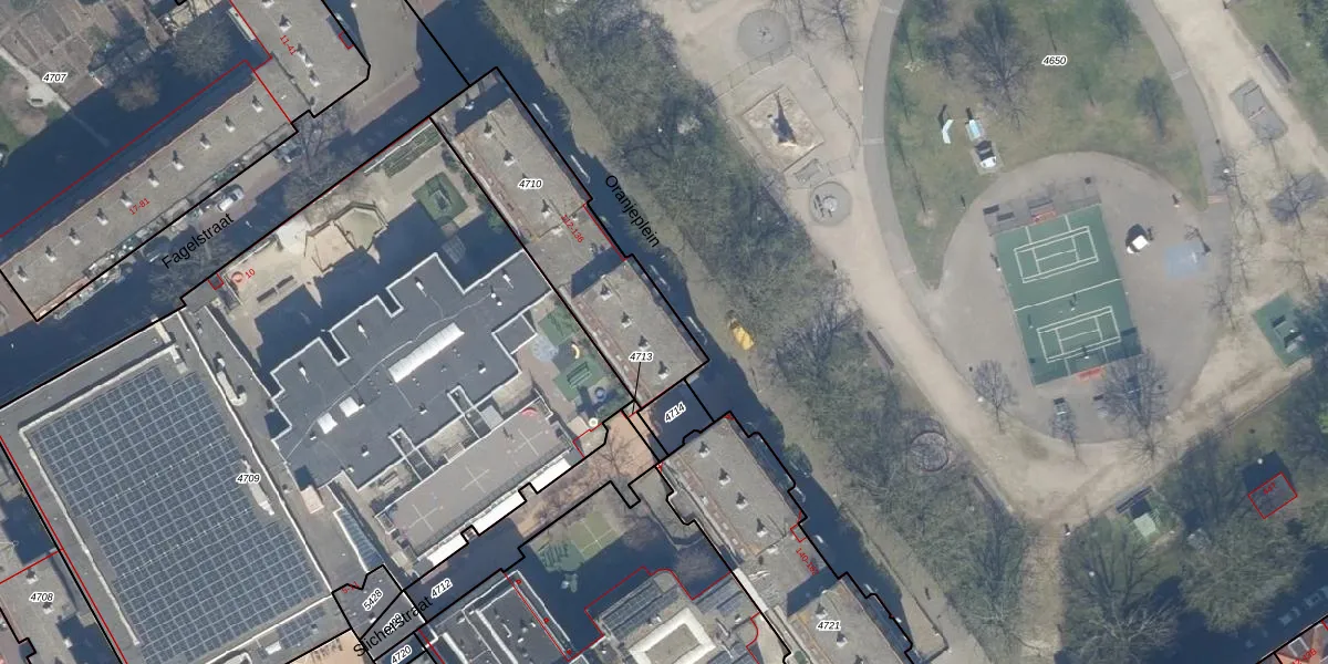 Het perceel waarop Oranjeplein 129 staat heeft een oppervlakte van 672 m². Dit is een groot perceel. De perceeloppervlakte wordt geregistreerd door het Kadaster. Gedetailleerde informatie over de maten van dit perceel kunt u vinden in het rapport Kadastrale kaart met maatvoering van Oranjeplein 129.