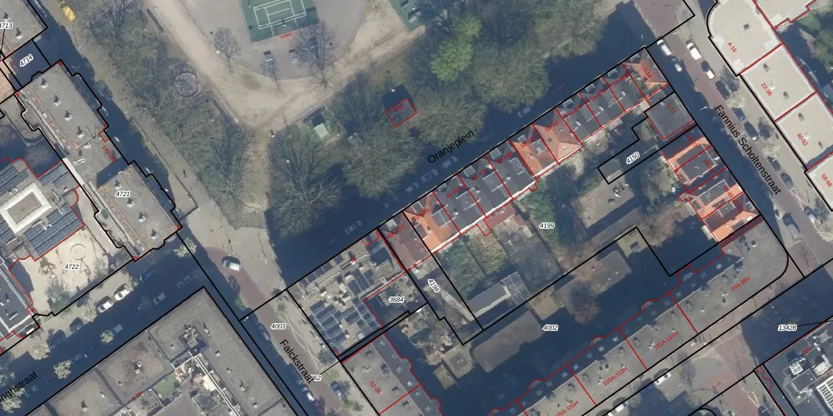 Oranjeplein 43-A is gelegen op kadastraal perceel GVH21AD4199. Deze kadastrale aanduiding is uniek en wordt gebruikt door het Kadaster om eigendomsrechten en andere zakelijke rechten vast te leggen. Het perceel maakt onderdeel uit van de kadastrale gemeente 's-Gravenhage.