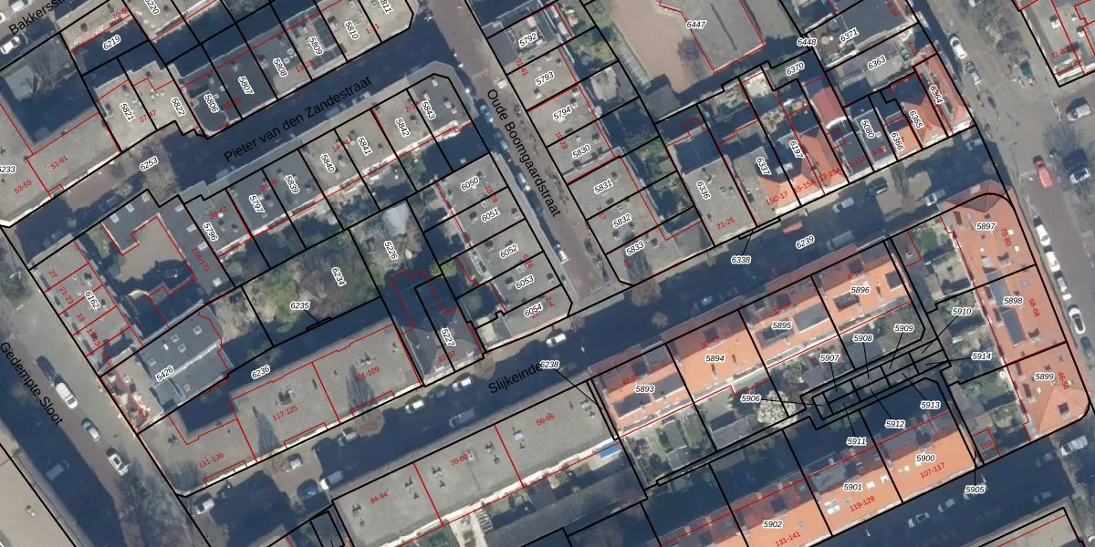 Het adres ligt op het perceel GVH00-C-6053, dat zich in de kadastrale gemeente 's-Gravenhage bevindt. Het perceel is kleiner dan gemiddeld in 's-Gravenhage. Het perceel is 122 m² groot, terwijl het gemiddelde ligt op 611,96 m². De grootste perceeloppervlakte in de kadastrale gemeente is 7,6 ha. De kleinste oppervlakte bedraagt 2 m². Er zijn 3 adressen aanwezig op het perceel. De huidige grenzen van het perceel zijn digitaal in de Basisregistratie Kadaster (BRK) geregistreerd op 31-10-2003.