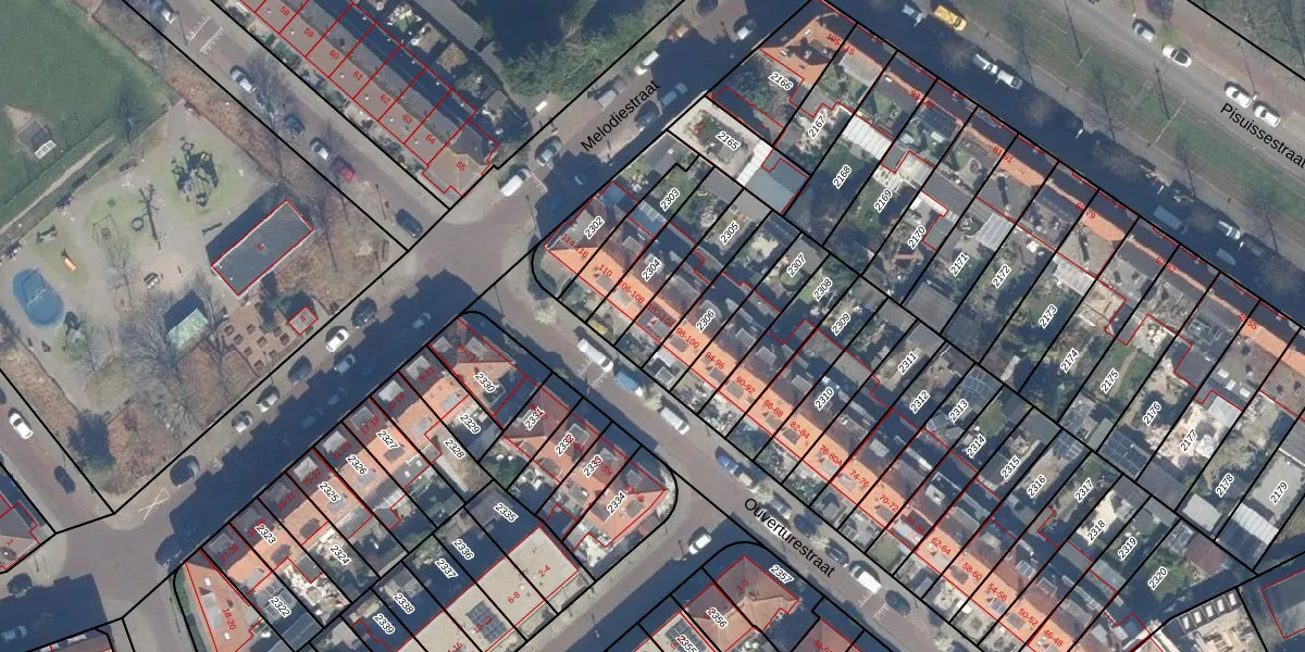 Het perceel waarop Ouverturestraat 104 staat heeft een oppervlakte van 175 m². Dit is een middelgroot perceel. De perceeloppervlakte wordt geregistreerd door het Kadaster. Gedetailleerde informatie over de maten van dit perceel kunt u vinden in het rapport Kadastrale kaart met maatvoering van Ouverturestraat 104.