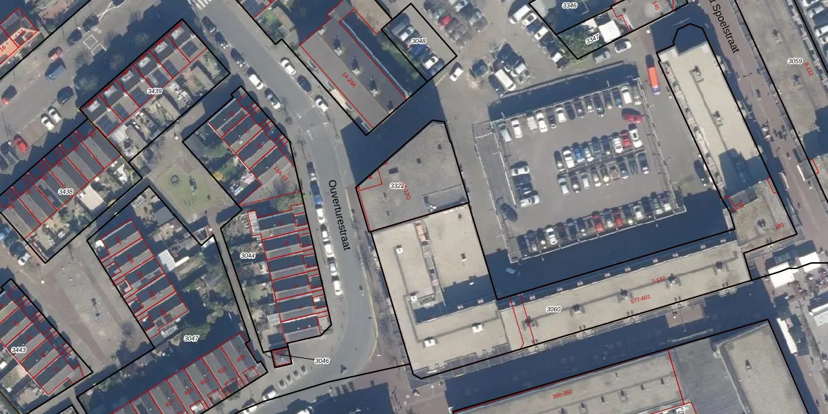 Het perceel waarop Ouverturestraat 12-D staat heeft een oppervlakte van 425 m². Dit is een groot perceel. De perceeloppervlakte wordt geregistreerd door het Kadaster. Gedetailleerde informatie over de maten van dit perceel kunt u vinden in het rapport Kadastrale kaart met maatvoering van Ouverturestraat 12-D.