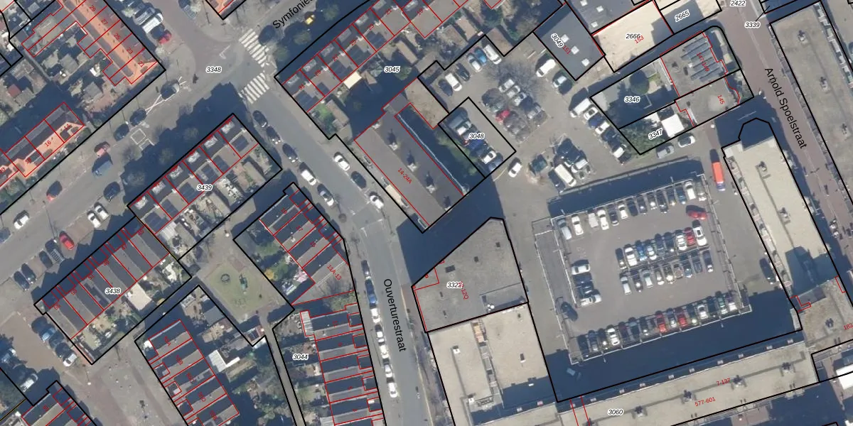 Het perceel waarop Ouverturestraat 18 staat heeft een oppervlakte van 1972 m². Dit is een zeer groot perceel. De perceeloppervlakte wordt geregistreerd door het Kadaster. Gedetailleerde informatie over de maten van dit perceel kunt u vinden in het rapport Kadastrale kaart met maatvoering van Ouverturestraat 18.