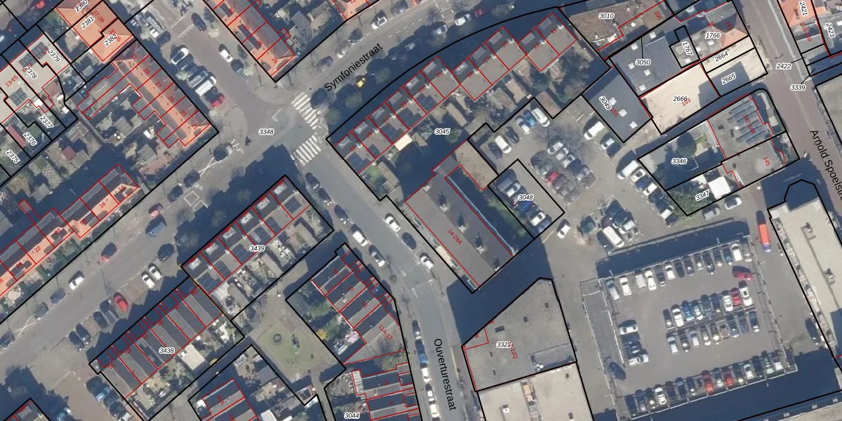 Het perceel waarop Ouverturestraat 20-A staat heeft een oppervlakte van 1972 m². Dit is een zeer groot perceel. De perceeloppervlakte wordt geregistreerd door het Kadaster. Gedetailleerde informatie over de maten van dit perceel kunt u vinden in het rapport Kadastrale kaart met maatvoering van Ouverturestraat 20-A.