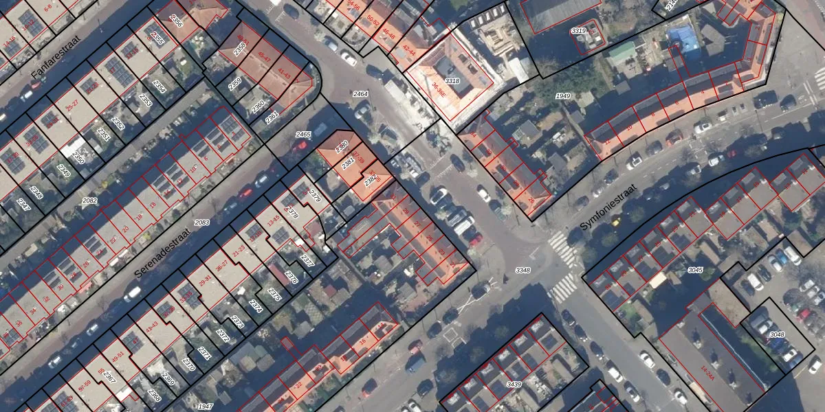 Het perceel waarop Ouverturestraat 29 staat heeft een oppervlakte van 2936 m². Dit is een zeer groot perceel. De perceeloppervlakte wordt geregistreerd door het Kadaster. Gedetailleerde informatie over de maten van dit perceel kunt u vinden in het rapport Kadastrale kaart met maatvoering van Ouverturestraat 29.
