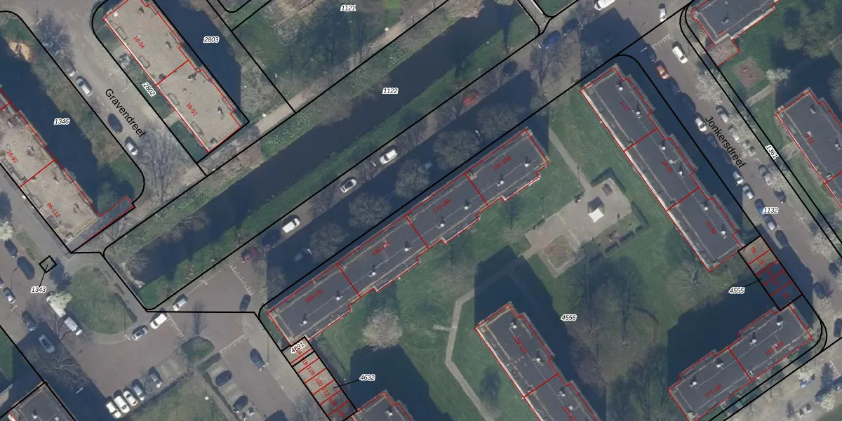 Het adres ligt op het perceel GVH37-AW-4556, dat zich in de kadastrale gemeente 's-Gravenhage bevindt. Het perceel is met 8728 m² relatief groot. Het gemiddelde ligt in de kadastrale gemeente 's-Gravenhage op 1320,78 m². Het grootste perceel in de kadastrale gemeente is 12,9 ha. Het kleinste perceel heeft een oppervlakte van 0 m². Op het perceel liggen in totaal 104 adressen. De laatste wijziging in het de Basisregistratie Kadaster (BRK) was op 13-10-2017.