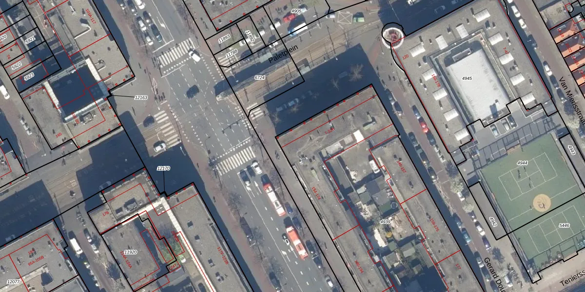 Het perceel waarop Paletplein 22-B staat heeft een oppervlakte van 3144 m². Dit is een zeer groot perceel. De perceeloppervlakte wordt geregistreerd door het Kadaster. Gedetailleerde informatie over de maten van dit perceel kunt u vinden in het rapport Kadastrale kaart met maatvoering van Paletplein 22-B.
