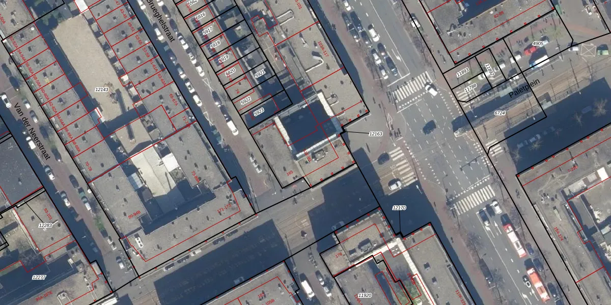 Het perceel waarop Paletplein 65 staat heeft een oppervlakte van 4466 m². Dit is een zeer groot perceel. De perceeloppervlakte wordt geregistreerd door het Kadaster. Gedetailleerde informatie over de maten van dit perceel kunt u vinden in het rapport Kadastrale kaart met maatvoering van Paletplein 65.
