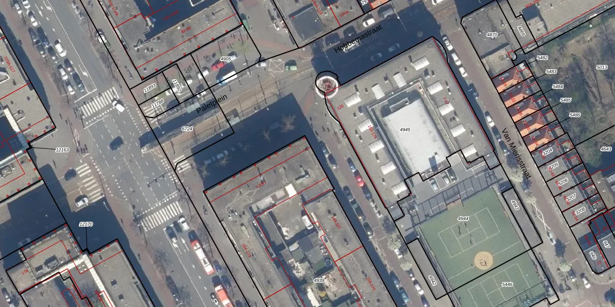 Het perceel waarop Paletplein 7 staat heeft een oppervlakte van 3144 m². Dit is een zeer groot perceel. De perceeloppervlakte wordt geregistreerd door het Kadaster. Gedetailleerde informatie over de maten van dit perceel kunt u vinden in het rapport Kadastrale kaart met maatvoering van Paletplein 7.
