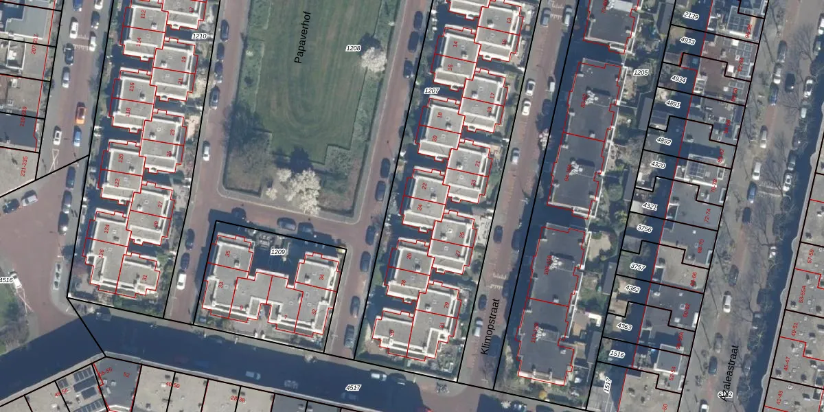 Het perceel waarop Papaverhof 24 staat heeft een oppervlakte van 3656 m². Dit is een zeer groot perceel. De perceeloppervlakte wordt geregistreerd door het Kadaster. Gedetailleerde informatie over de maten van dit perceel kunt u vinden in het rapport Kadastrale kaart met maatvoering van Papaverhof 24.
