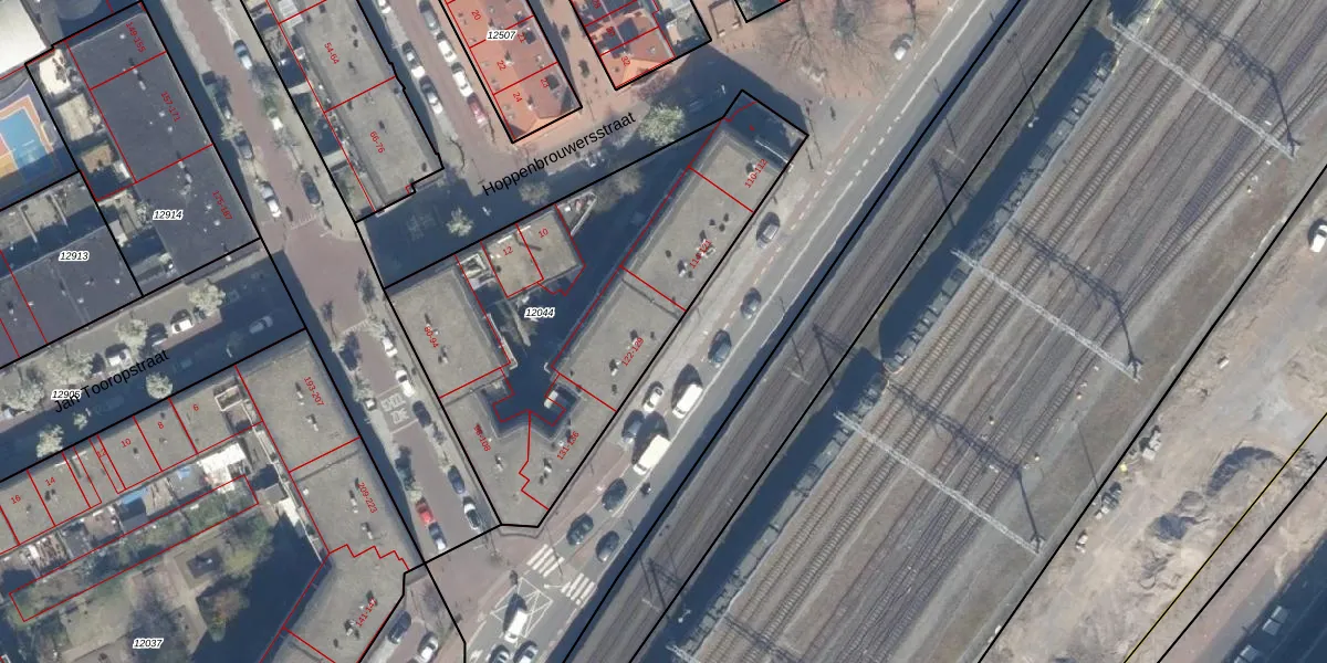 Het perceel waarop het adres ligt is GVH08-L-12044. De afkorting 'GVH08' staat voor kadastrale gemeente 's-Gravenhage. Het perceel is met 1772 m² relatief groot. Het gemiddelde ligt in de kadastrale gemeente 's-Gravenhage op 468,2 m². De grootste perceeloppervlakte in de kadastrale gemeente is 3,8 ha. De kleinste oppervlakte bedraagt 0 m². Er zijn 42 adressen aanwezig op het perceel. De laatste wijziging in het de Basisregistratie Kadaster (BRK) was op 14-04-2010.
