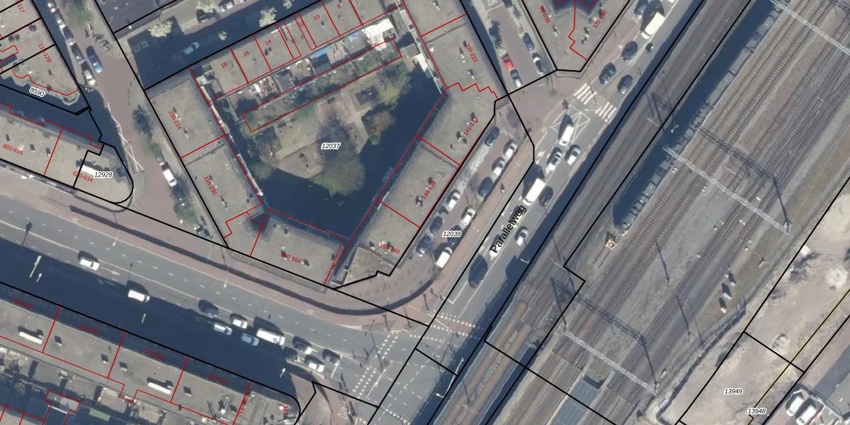Parallelweg 153 is gelegen op kadastraal perceel GVH08L12037. Deze kadastrale aanduiding is uniek en wordt gebruikt door het Kadaster om eigendomsrechten en andere zakelijke rechten vast te leggen. Het perceel maakt onderdeel uit van de kadastrale gemeente 's-Gravenhage.