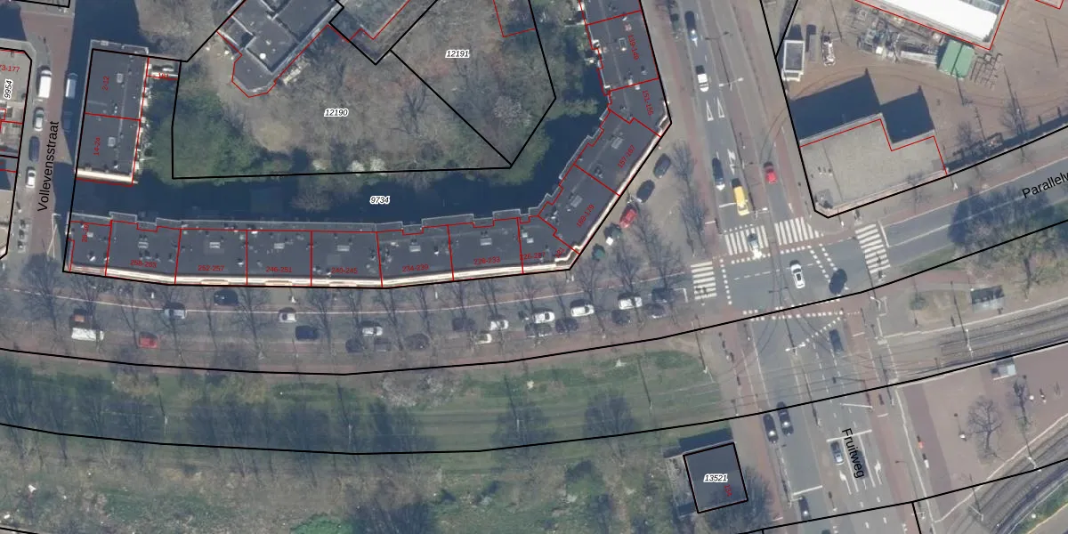 Parallelweg 227 is gelegen op kadastraal perceel GVH08L9734. Deze kadastrale aanduiding is uniek en wordt gebruikt door het Kadaster om eigendomsrechten en andere zakelijke rechten vast te leggen. Het perceel maakt onderdeel uit van de kadastrale gemeente 's-Gravenhage.