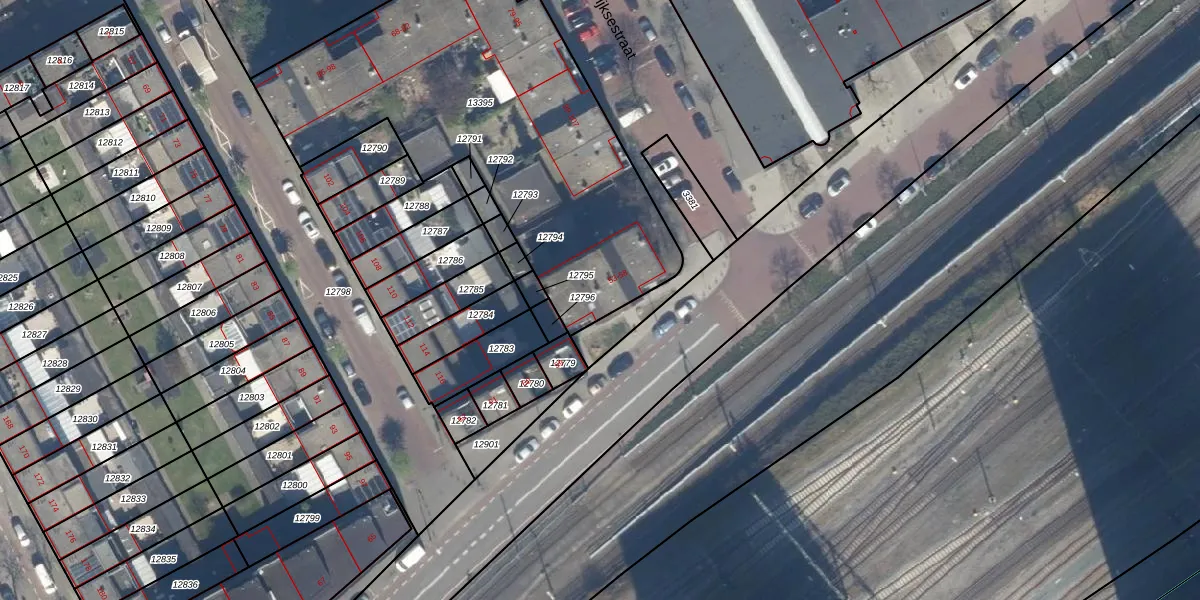 Het perceel waarop het adres ligt is GVH08-L-13395. De afkorting 'GVH08' staat voor kadastrale gemeente 's-Gravenhage. De gemiddelde perceeloppervlakte in de kadastrale gemeente 's-Gravenhage is 468,2 m². Dit perceel is met zijn 1965 m² dus groter dan gemiddeld. De grootste perceeloppervlakte in de kadastrale gemeente is 3,8 ha. De kleinste oppervlakte bedraagt 0 m². Op het perceel zijn 33 adressen aanwezig. De huidige grenzen van het perceel zijn digitaal in de Basisregistratie Kadaster (BRK) geregistreerd op 24-11-2010.