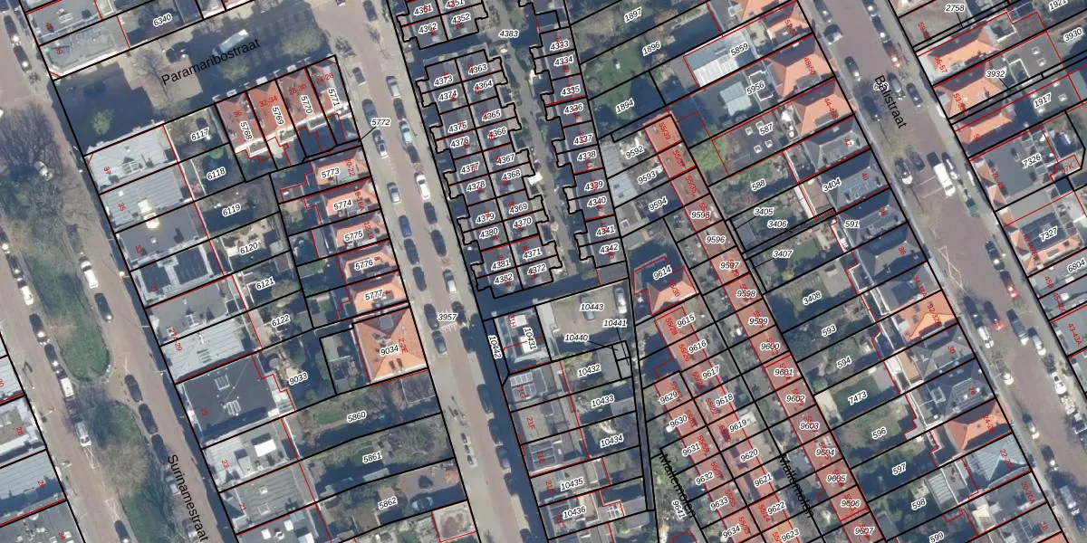 Het perceel waarop Paramaribostraat 101 staat heeft een oppervlakte van 30 m². Dit is een klein perceel. De perceeloppervlakte wordt geregistreerd door het Kadaster. Gedetailleerde informatie over de maten van dit perceel kunt u vinden in het rapport Kadastrale kaart met maatvoering van Paramaribostraat 101.