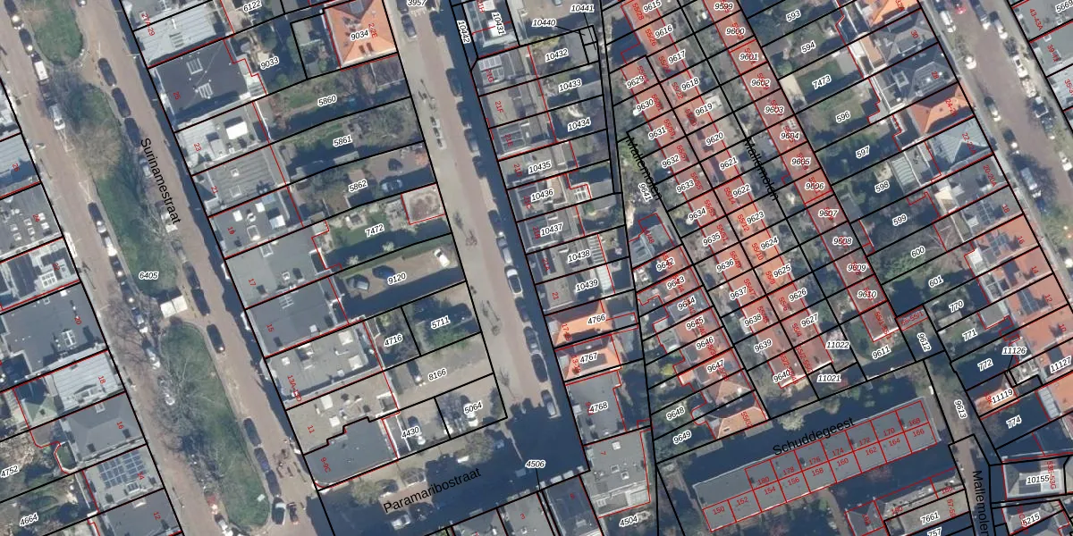 Het perceel waarop Paramaribostraat 21-A staat heeft een oppervlakte van 115 m². Dit is een middelgroot perceel. De perceeloppervlakte wordt geregistreerd door het Kadaster. Gedetailleerde informatie over de maten van dit perceel kunt u vinden in het rapport Kadastrale kaart met maatvoering van Paramaribostraat 21-A.