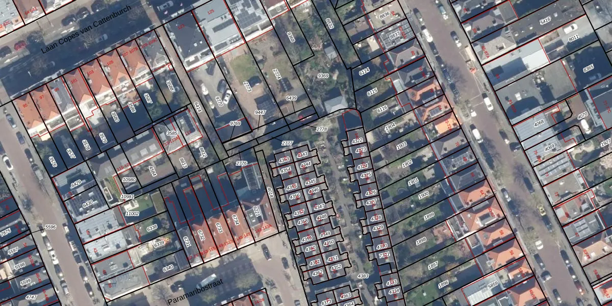 Paramaribostraat 63 is gelegen op kadastraal perceel GVH11P4343. Deze kadastrale aanduiding is uniek en wordt gebruikt door het Kadaster om eigendomsrechten en andere zakelijke rechten vast te leggen. Het perceel maakt onderdeel uit van de kadastrale gemeente 's-Gravenhage.