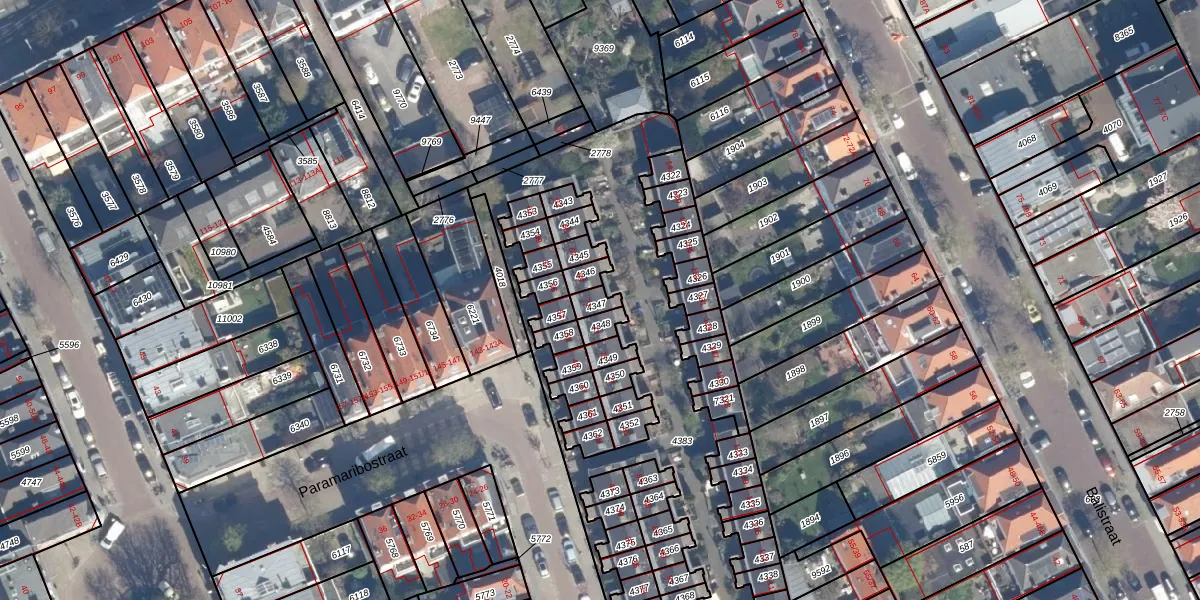 Het perceel waarop Paramaribostraat 71 staat heeft een oppervlakte van 30 m². Dit is een klein perceel. De perceeloppervlakte wordt geregistreerd door het Kadaster. Gedetailleerde informatie over de maten van dit perceel kunt u vinden in het rapport Kadastrale kaart met maatvoering van Paramaribostraat 71.