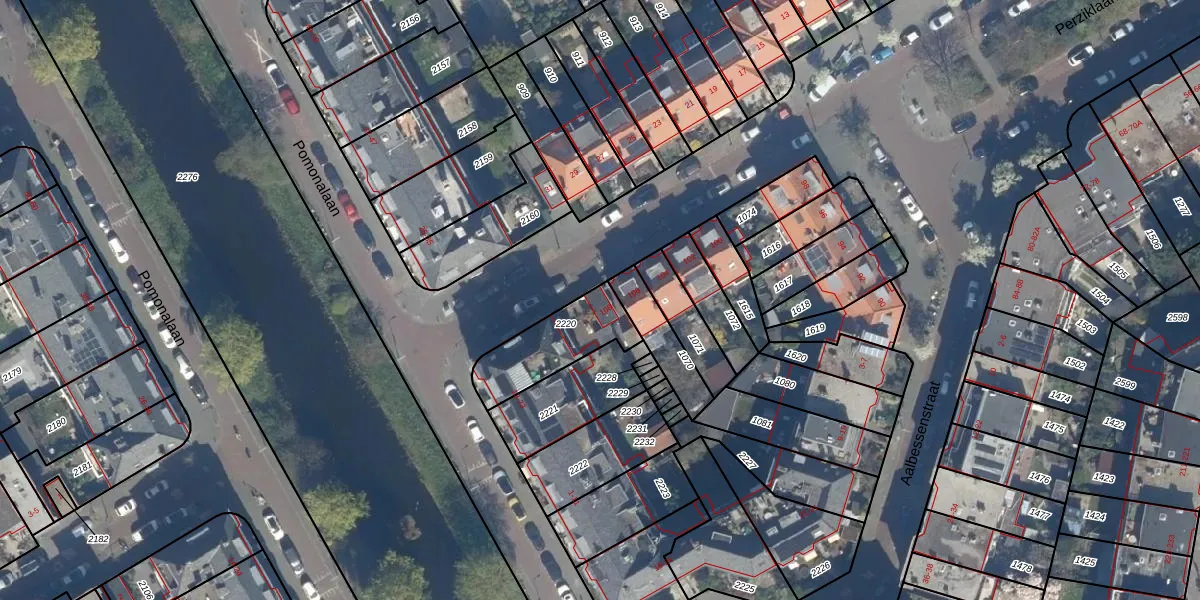 Perziklaan 108 is gelegen op kadastraal perceel GVH36AV2220. Deze kadastrale aanduiding is uniek en wordt gebruikt door het Kadaster om eigendomsrechten en andere zakelijke rechten vast te leggen. Het perceel maakt onderdeel uit van de kadastrale gemeente 's-Gravenhage.