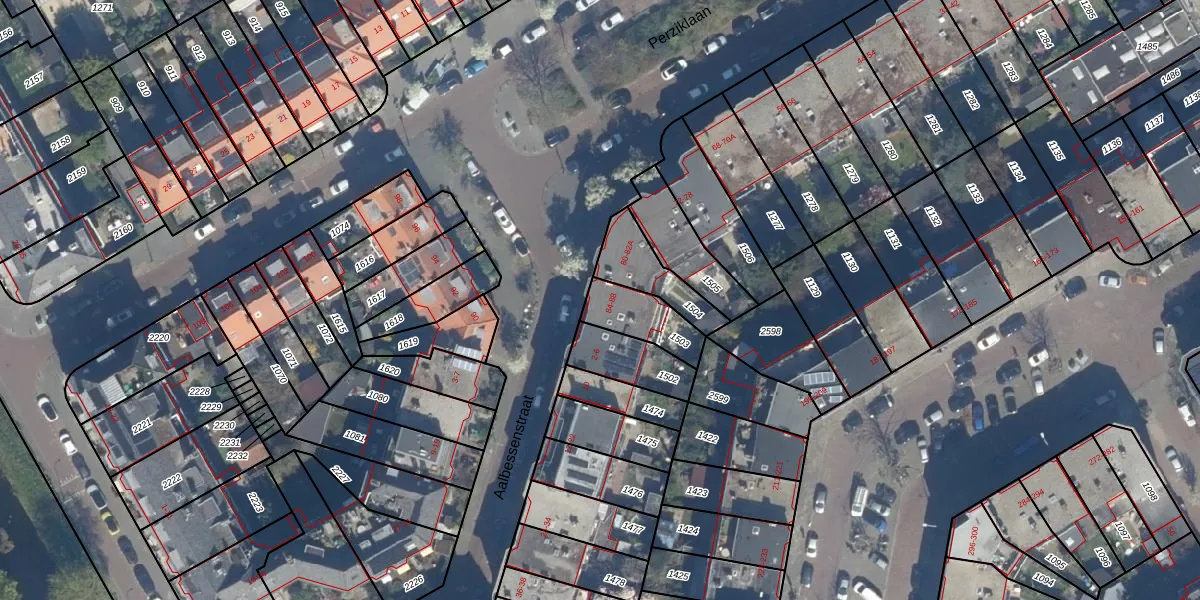 Perziklaan 84 is gelegen op kadastraal perceel GVH36AV1503. Deze kadastrale aanduiding is uniek en wordt gebruikt door het Kadaster om eigendomsrechten en andere zakelijke rechten vast te leggen. Het perceel maakt onderdeel uit van de kadastrale gemeente 's-Gravenhage.