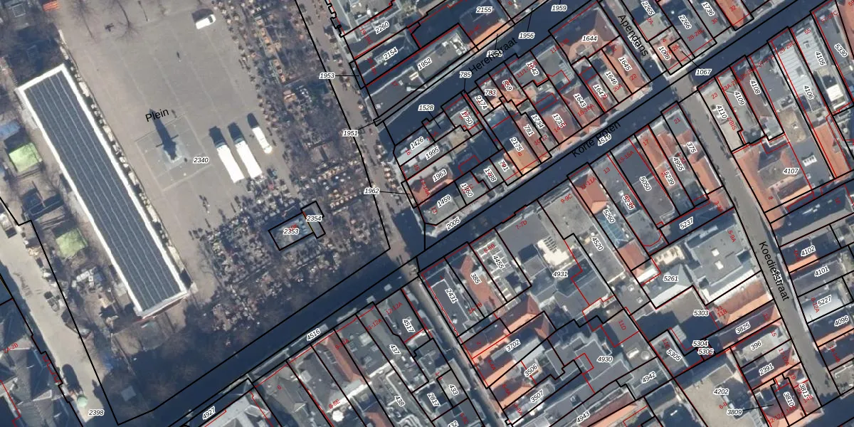 Het perceel waarop Plein 13 staat heeft een oppervlakte van 62 m². Dit is een klein perceel. De perceeloppervlakte wordt geregistreerd door het Kadaster. Gedetailleerde informatie over de maten van dit perceel kunt u vinden in het rapport Kadastrale kaart met maatvoering van Plein 13.