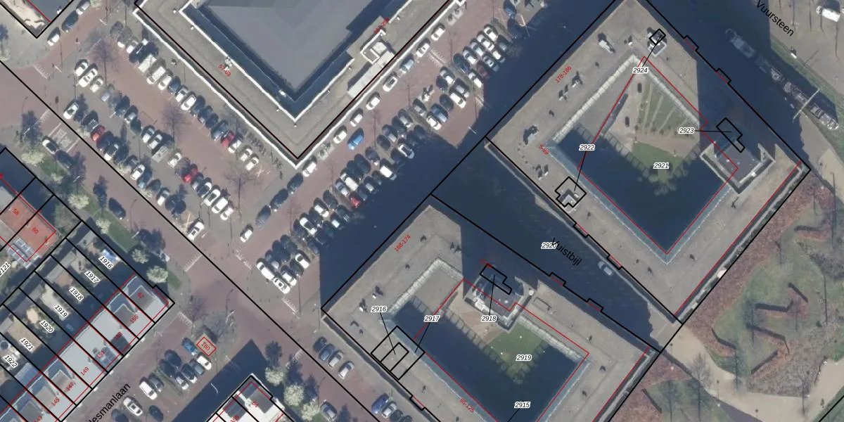 Het perceel waarop Plesmanlaan 174 staat heeft een oppervlakte van 2801 m². Dit is een zeer groot perceel. De perceeloppervlakte wordt geregistreerd door het Kadaster. Gedetailleerde informatie over de maten van dit perceel kunt u vinden in het rapport Kadastrale kaart met maatvoering van Plesmanlaan 174.