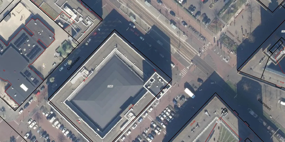 Het perceel waarop het adres ligt is GVH49-BK-2585. De afkorting 'GVH49' staat voor kadastrale gemeente 's-Gravenhage. Het perceel is met 3685 m² relatief groot. Het gemiddelde ligt in de kadastrale gemeente 's-Gravenhage op 1212,81 m². De grootste perceeloppervlakte in de kadastrale gemeente is 11,5 ha. De kleinste oppervlakte bedraagt 1 m². Op het perceel zijn 79 adressen aanwezig. De huidige grenzen van het perceel zijn digitaal in de Basisregistratie Kadaster (BRK) geregistreerd op 03-05-2011.
