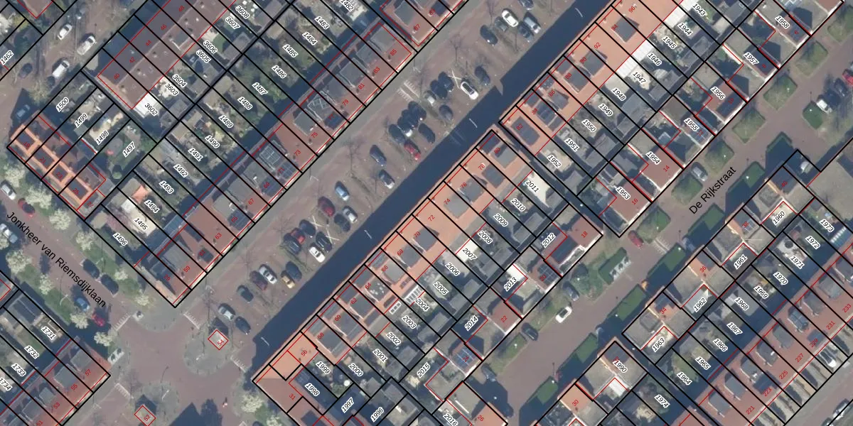 Gebruik de zoekbalk of klik op een perceel voor informatie over de adressen binnen dit perceel.