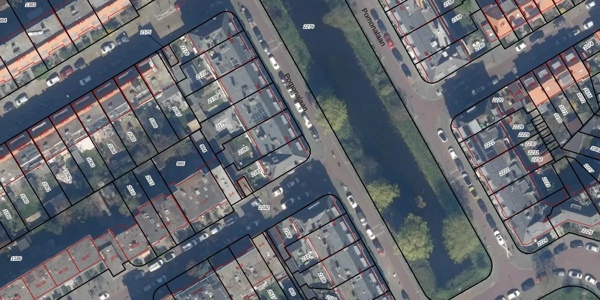 Pomonalaan 30 is gelegen op kadastraal perceel GVH36AV2181. Deze kadastrale aanduiding is uniek en wordt gebruikt door het Kadaster om eigendomsrechten en andere zakelijke rechten vast te leggen. Het perceel maakt onderdeel uit van de kadastrale gemeente 's-Gravenhage.