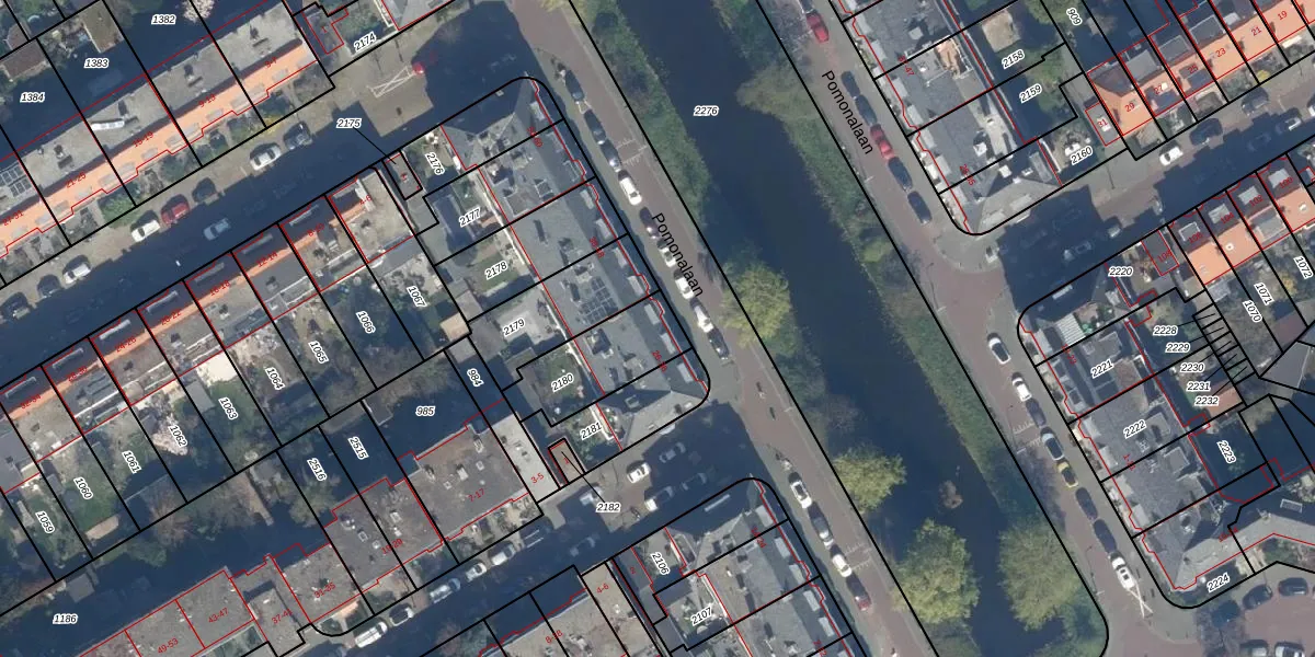 Pomonalaan 34 is gelegen op kadastraal perceel GVH36AV2180. Deze kadastrale aanduiding is uniek en wordt gebruikt door het Kadaster om eigendomsrechten en andere zakelijke rechten vast te leggen. Het perceel maakt onderdeel uit van de kadastrale gemeente 's-Gravenhage.