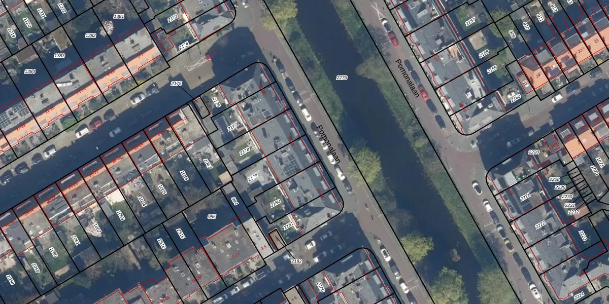 Pomonalaan 38 is gelegen op kadastraal perceel GVH36AV2179. Deze kadastrale aanduiding is uniek en wordt gebruikt door het Kadaster om eigendomsrechten en andere zakelijke rechten vast te leggen. Het perceel maakt onderdeel uit van de kadastrale gemeente 's-Gravenhage.