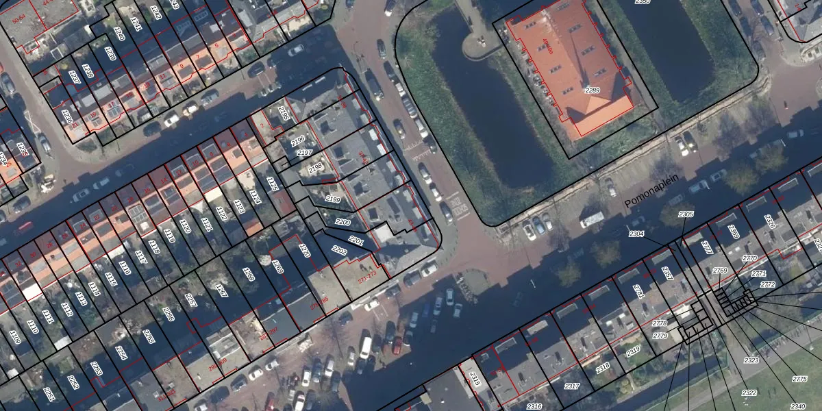 Pomonaplein 45 is gelegen op kadastraal perceel GVH36AV2200. Deze kadastrale aanduiding is uniek en wordt gebruikt door het Kadaster om eigendomsrechten en andere zakelijke rechten vast te leggen. Het perceel maakt onderdeel uit van de kadastrale gemeente 's-Gravenhage.