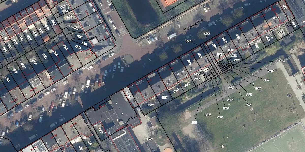Het perceel waarop Pomonaplein 57 staat heeft een oppervlakte van 193 m². Dit is een middelgroot perceel. De perceeloppervlakte wordt geregistreerd door het Kadaster. Gedetailleerde informatie over de maten van dit perceel kunt u vinden in het rapport Kadastrale kaart met maatvoering van Pomonaplein 57.