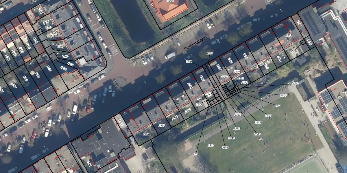 Het perceel waarop Pomonaplein 63 staat heeft een oppervlakte van 194 m². Dit is een middelgroot perceel. De perceeloppervlakte wordt geregistreerd door het Kadaster. Gedetailleerde informatie over de maten van dit perceel kunt u vinden in het rapport Kadastrale kaart met maatvoering van Pomonaplein 63.